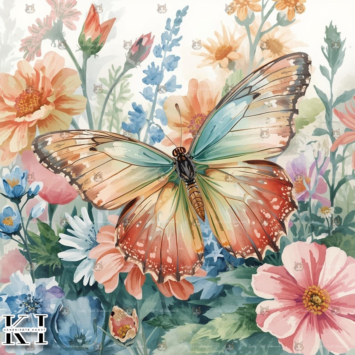 Der Schmetterling wirkt beinahe schwerelos, frei von Spannung, getragen von Farbe und Gefühl.